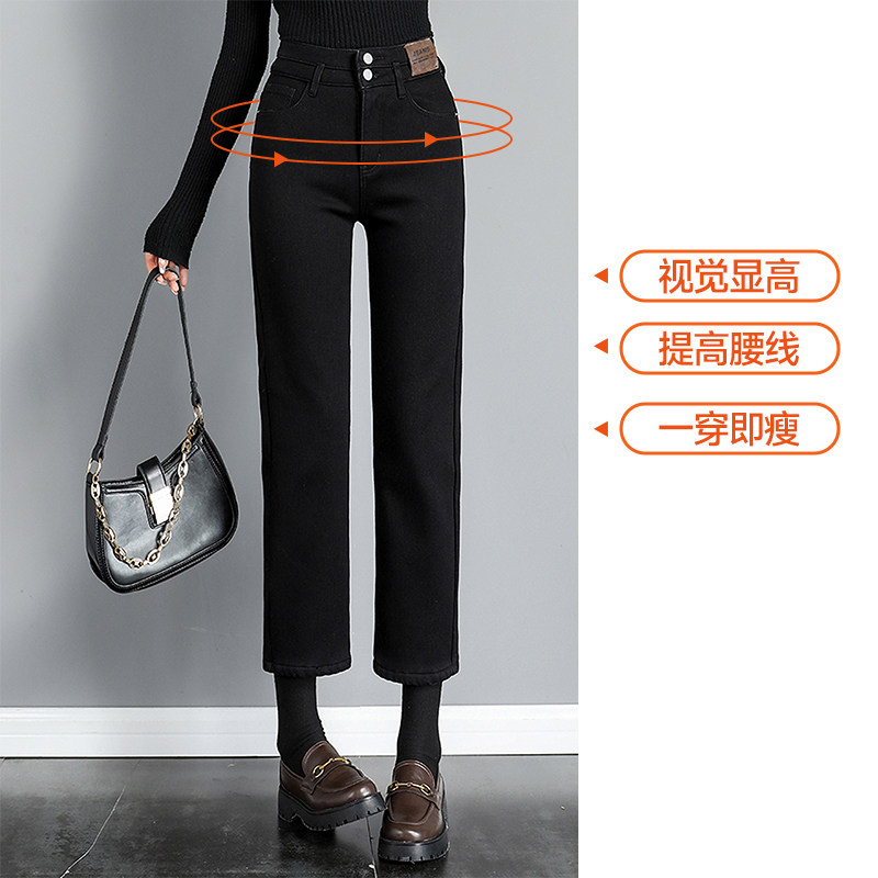 直筒牛仔裤女秋冬2025年新款高腰显瘦八九分小个子加绒烟管裤子