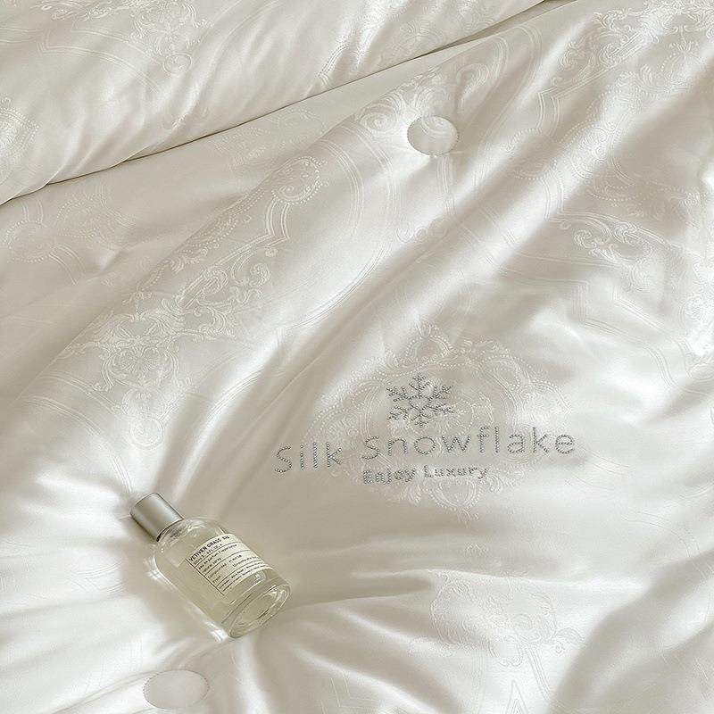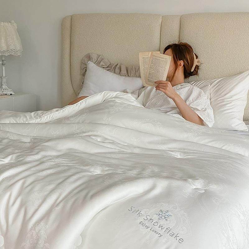 纯白色60支提花烫钻蚕丝雪绒四季被加厚保暖双人春秋被四季家用