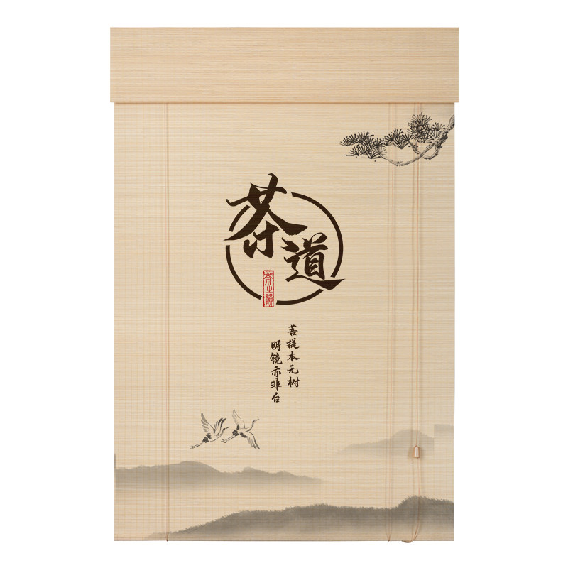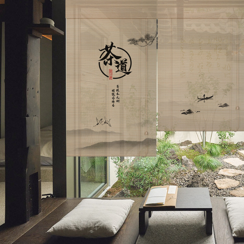 贵品卷帘日式遮光隔断帘印花屏风茶室中式遮阳窗帘卷拉式竹帘