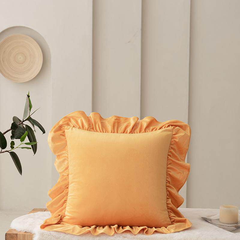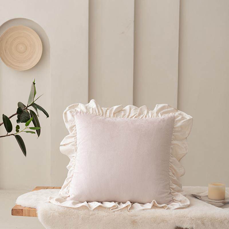 加厚荷兰绒纯色花边抱枕套田园轻奢客厅沙发抱枕靠枕可拆洗靠背垫