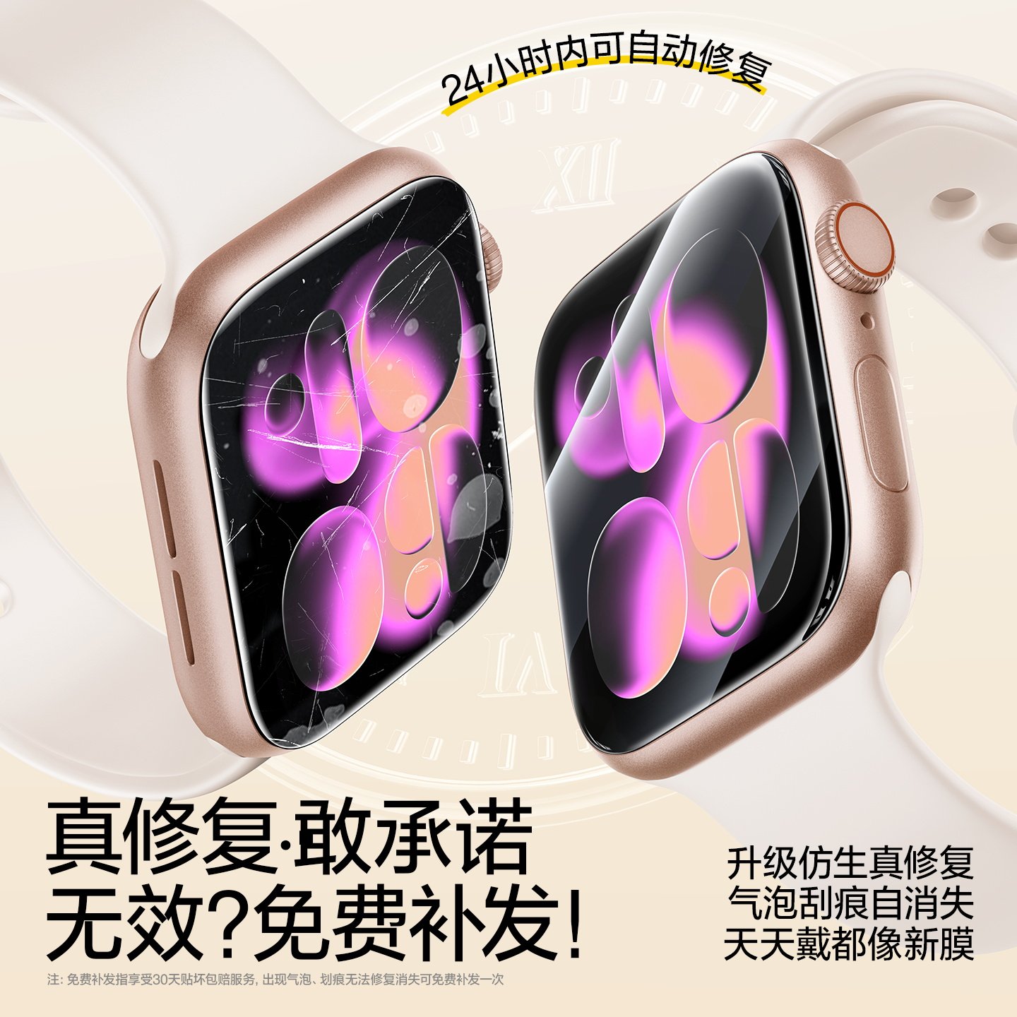 闪魔适用iwatch保护膜S11/SE3苹果手表膜applewatchS10新款S9全屏S8钢化膜series7水凝s6/5/4全包se屏幕软贴