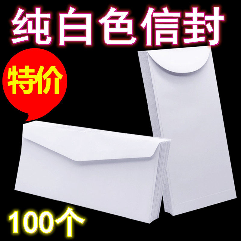 白信封100个装西式 空白色纯白信封正面侧面开口4*9信封航空全白
