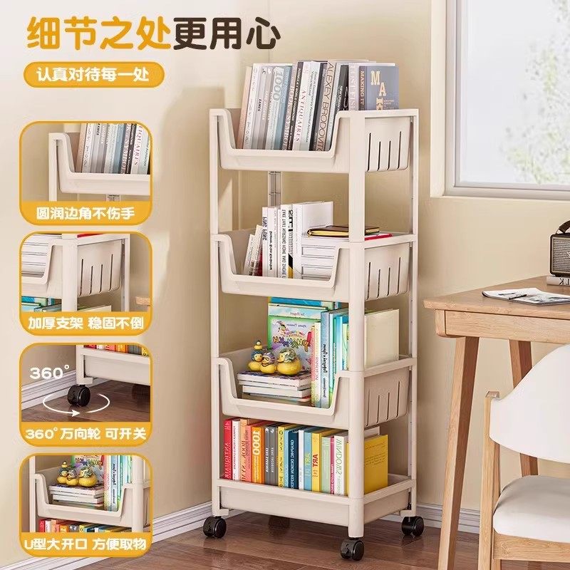 书架可移动置物架落地儿童玩具收纳架家用零食小推车简易阅读书FZ