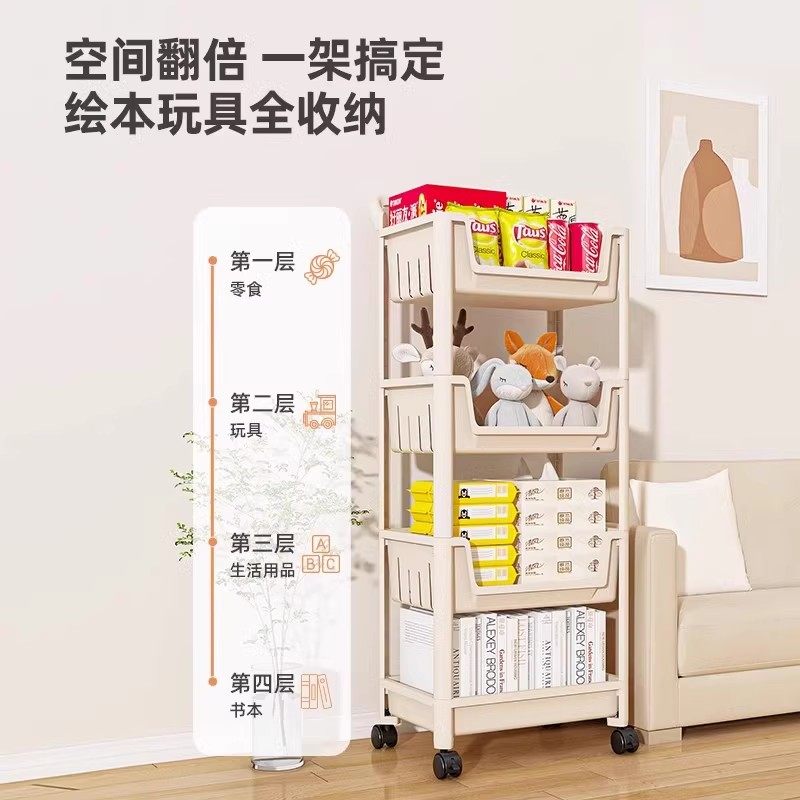 置物架落地儿童书架玩具收纳架子厨房家用零食可移动小推车储物柜