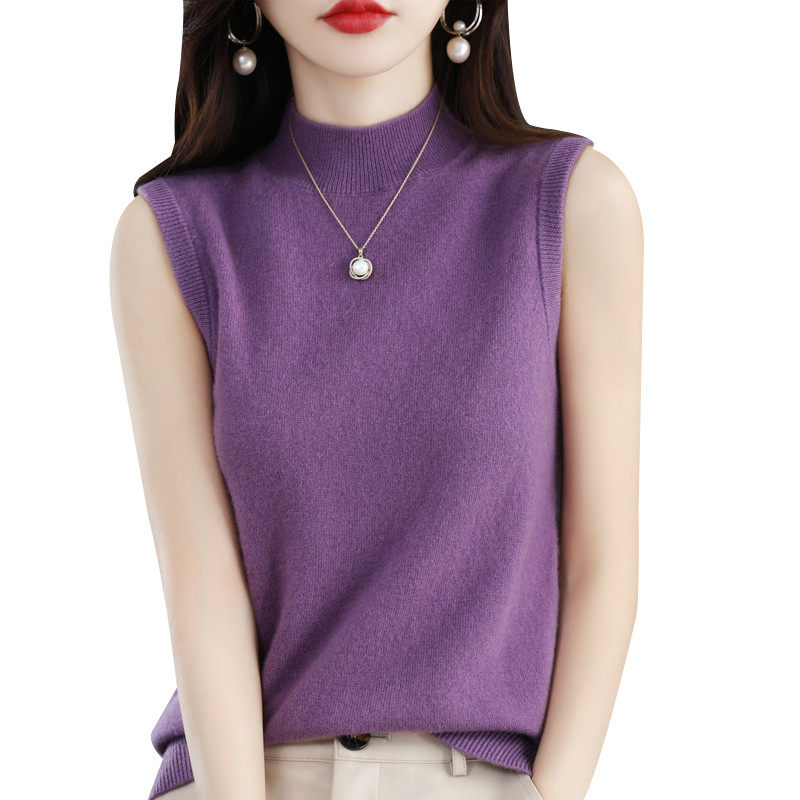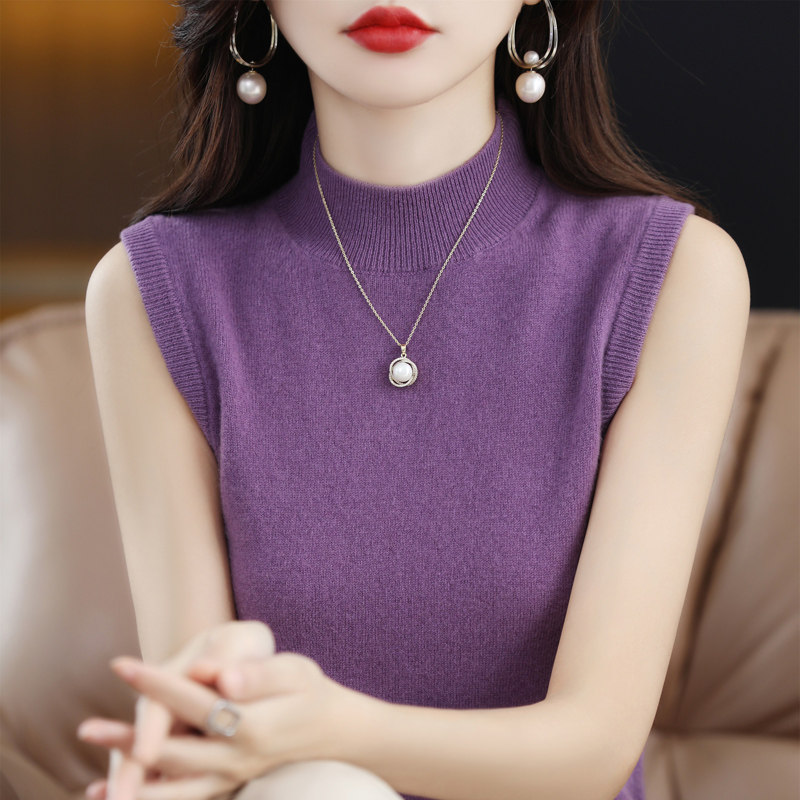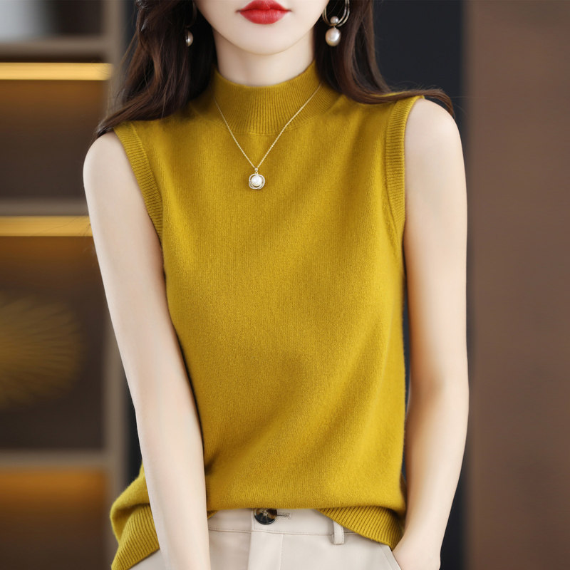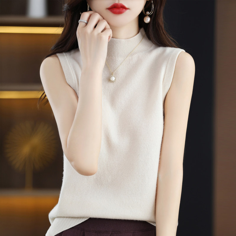 春季新无袖女半高领吊带打底衫女纯色西装内搭羊毛针织衫套头背心