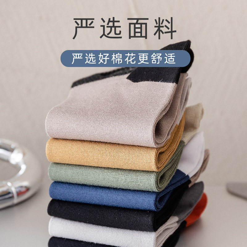 新款日本MUl纯棉袜子男士短筒袜秋冬季防臭中筒袜吸汗透气运动袜