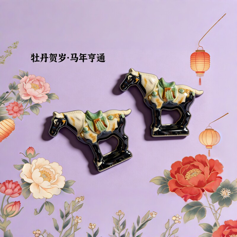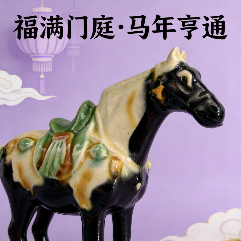 洛阳非遗文创唐三彩陶瓷马摆件中国马装饰工艺礼品酒柜玄关冰箱贴