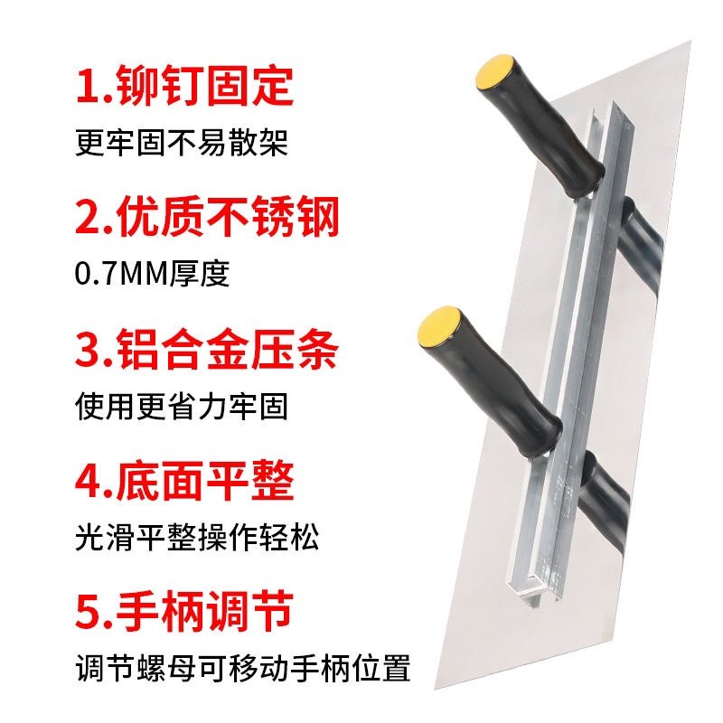 双手柄不锈钢抹子刮腻子刮板批墙找平批灰刀工具铝合金大板抹泥刀