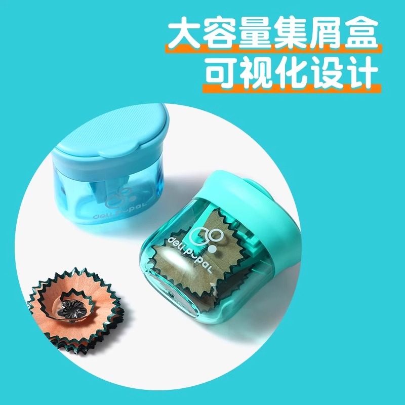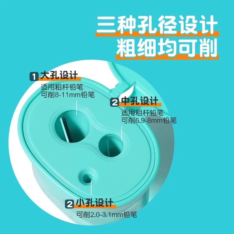得力三孔卷笔刀小学生专用削笔刀大孔径削笔器迷你型手动刨笔机