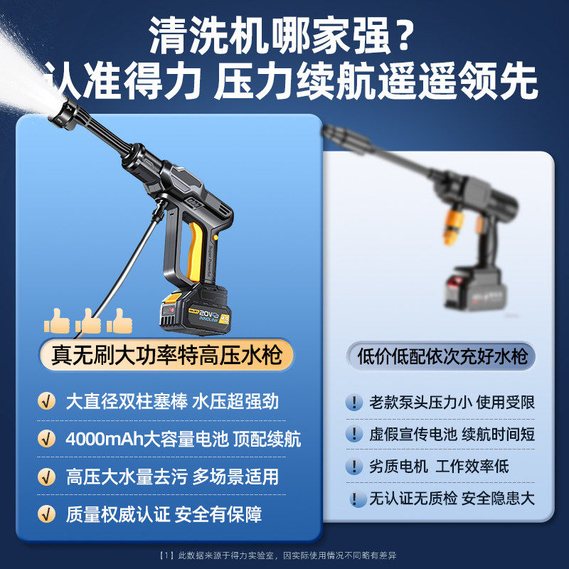 得力无线洗车机高压水枪家用车用清洗神器强力锂电池充电增压水抢