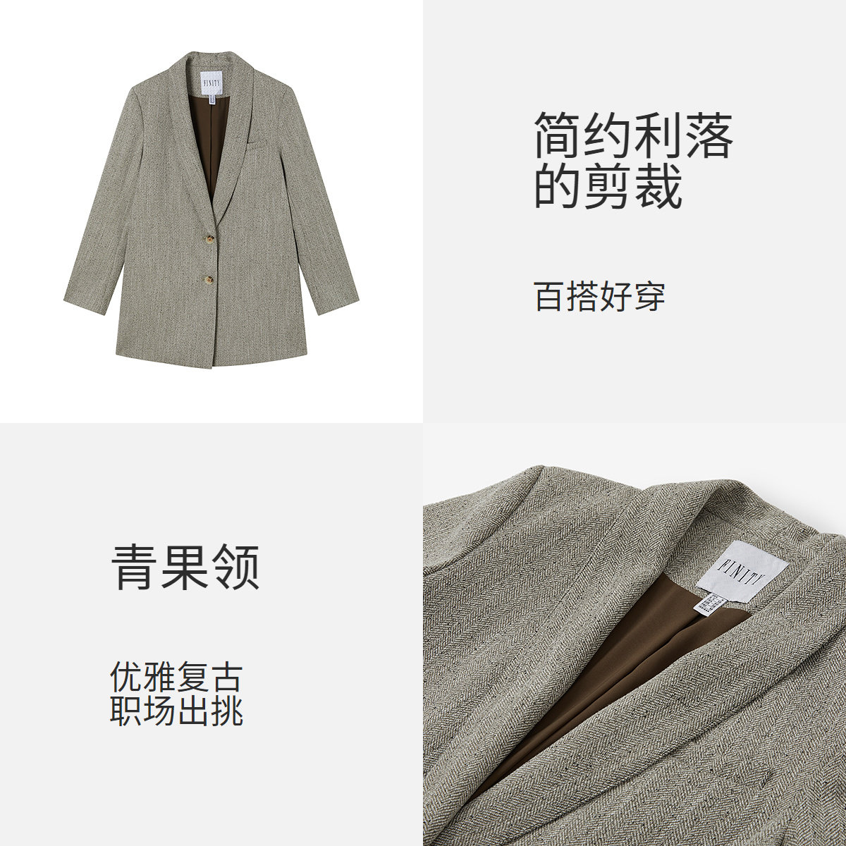 【100%绵羊毛】Eland衣恋西装女时尚通勤人字呢外套2025冬季新款