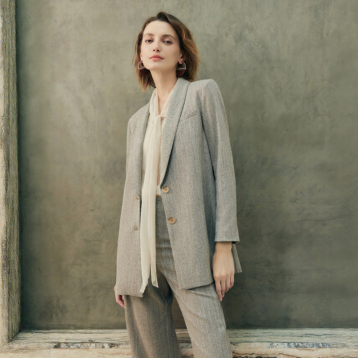 COCOBELLA老钱风精纺花纱羊毛正肩西装女春气质休闲外套SI7029