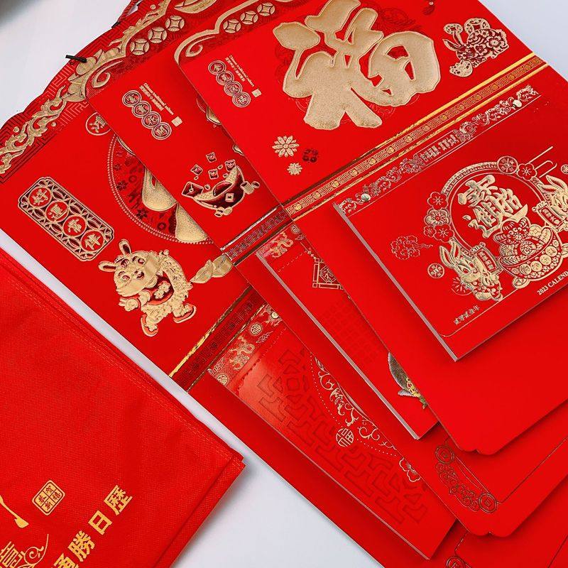 2026年双日挂历家用挂墙企业广告精美个性订做定做定制印刷创意中国红艺术月历保险公司传统日历吊牌年历清仓