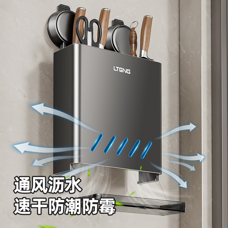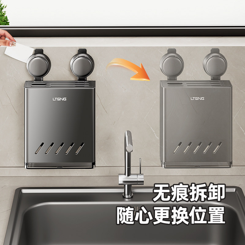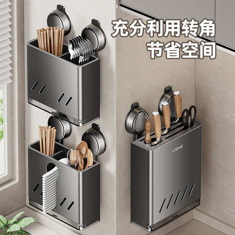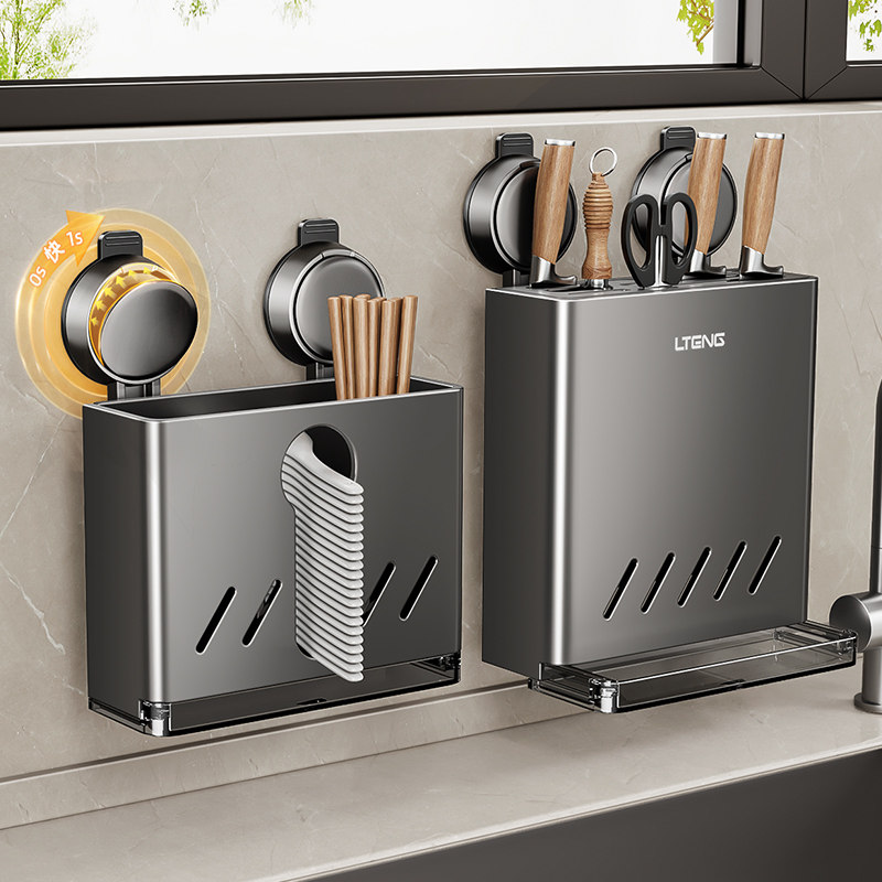 厨房吸盘刀架置物架壁挂式多功能家用菜刀架筷子筒一体收纳架挂钩