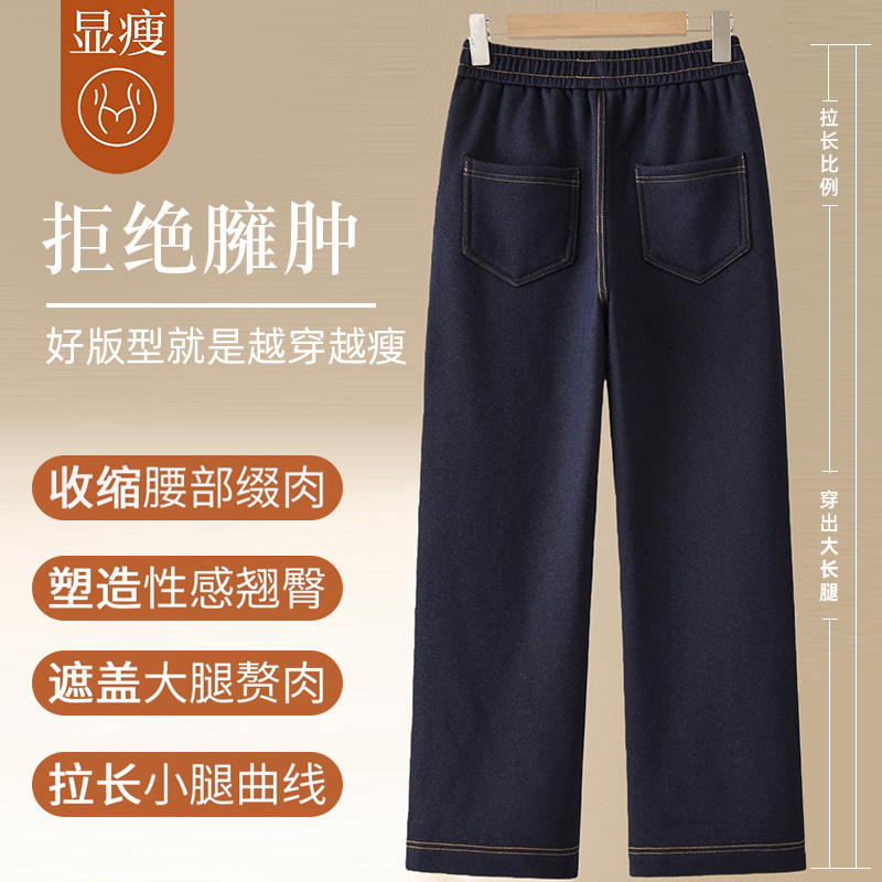 2026新款妈妈春装端庄大气牛仔裤中老年女装高腰显瘦直筒阔腿长裤
