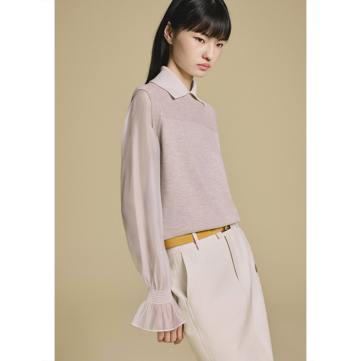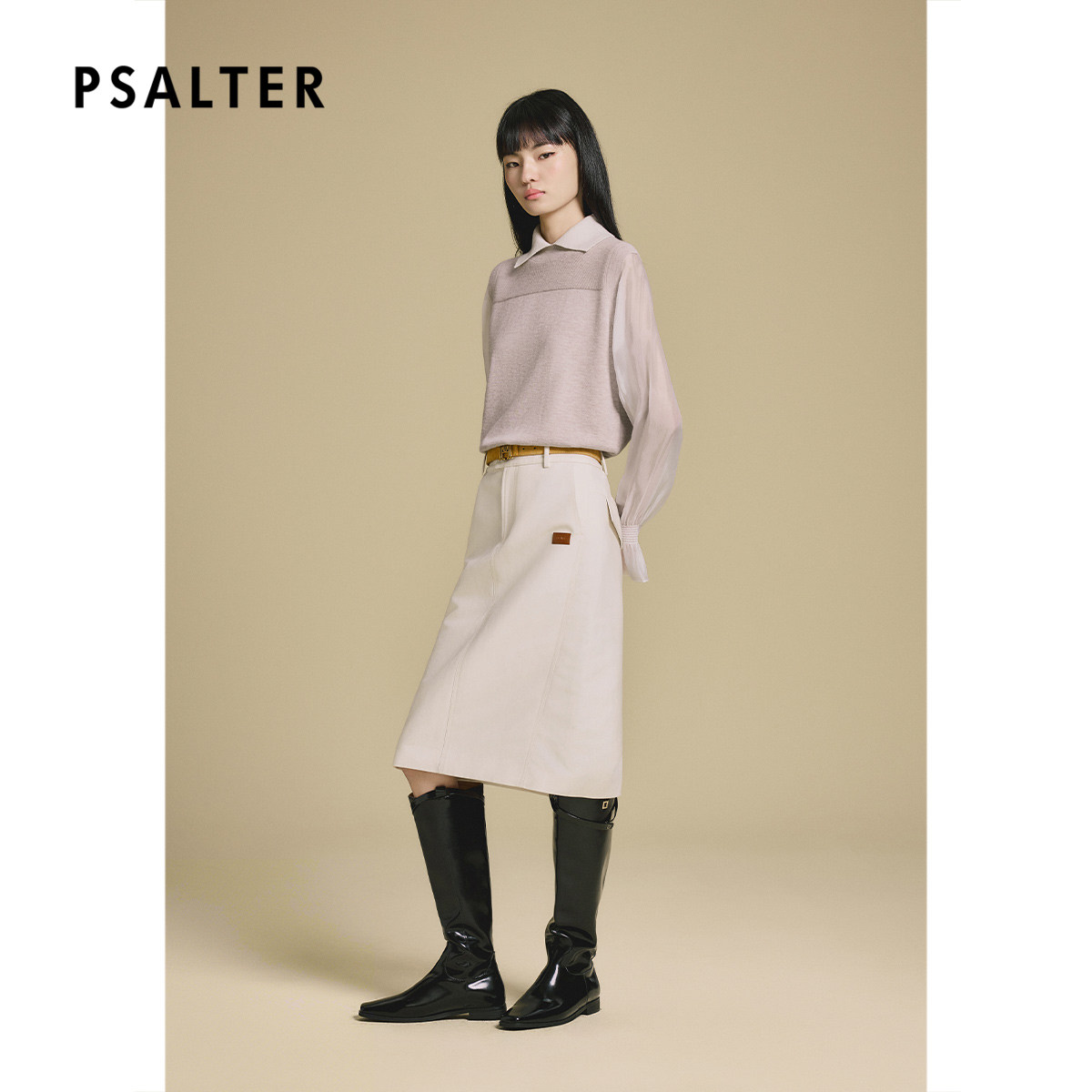 PSALTER诗篇高智学院风假两件拼接羊毛针织衫2025冬款