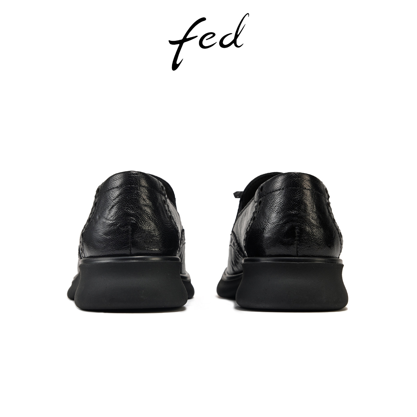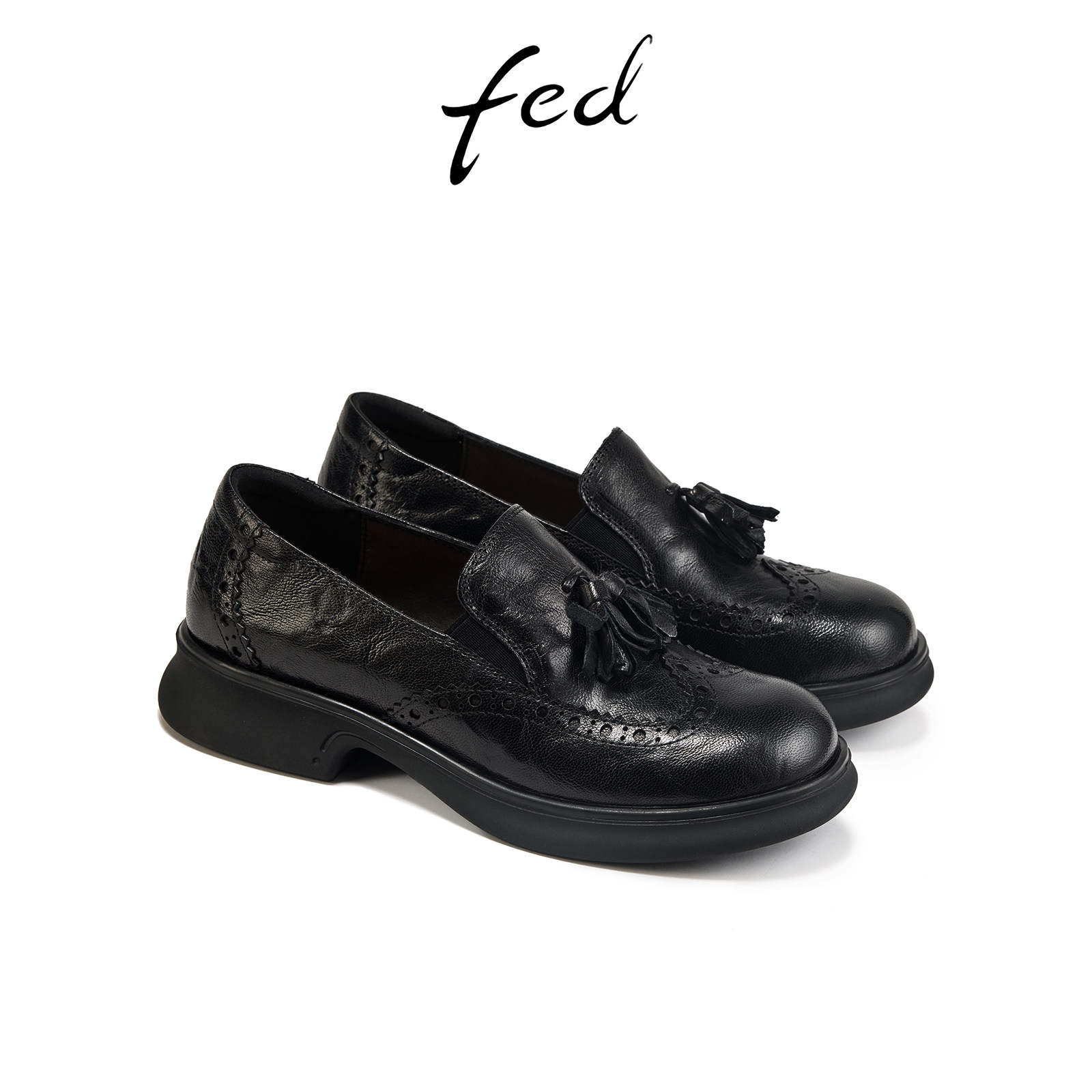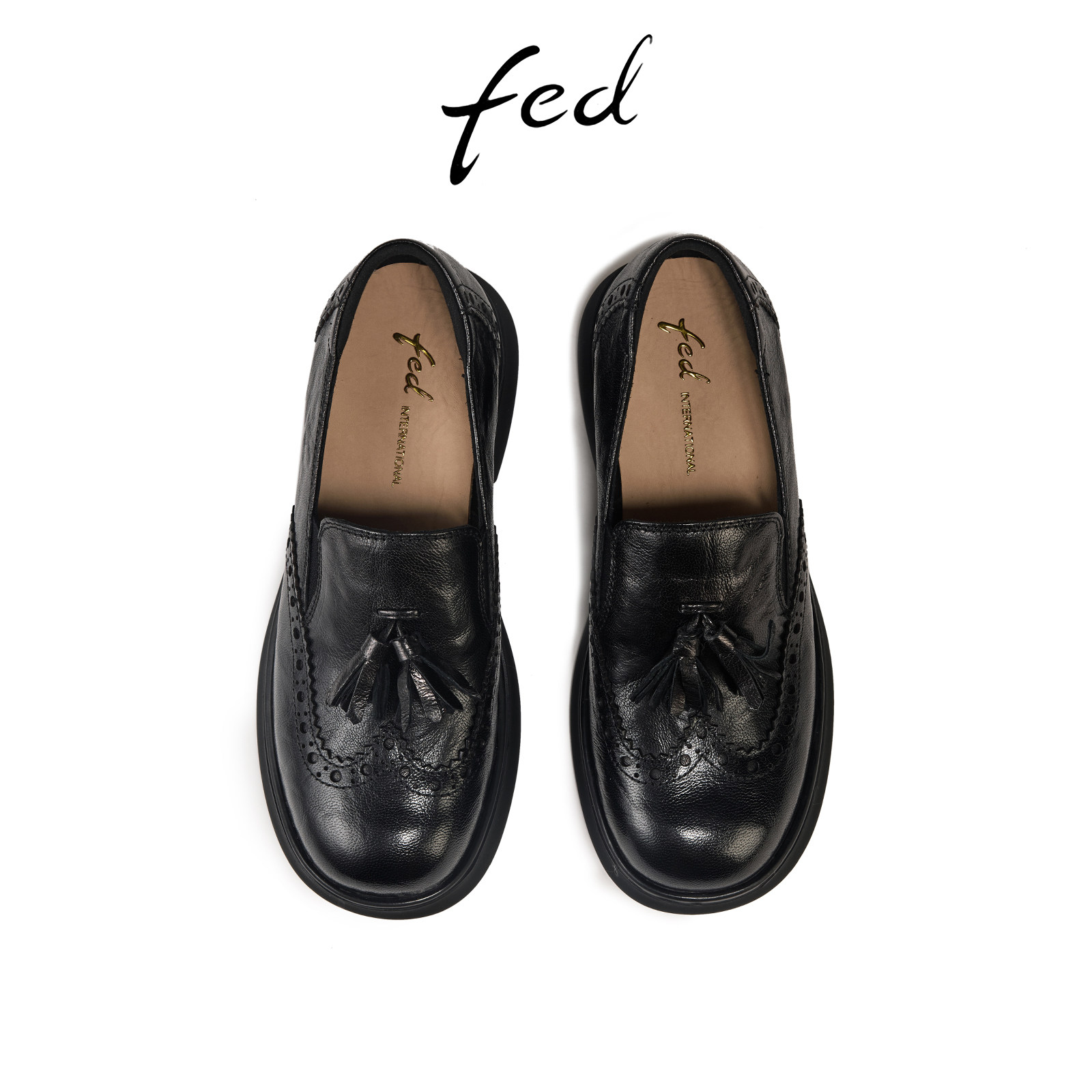 fed真皮单鞋秋季新款女鞋雕花乐福鞋粗跟布洛克鞋女款S0812-ZC516