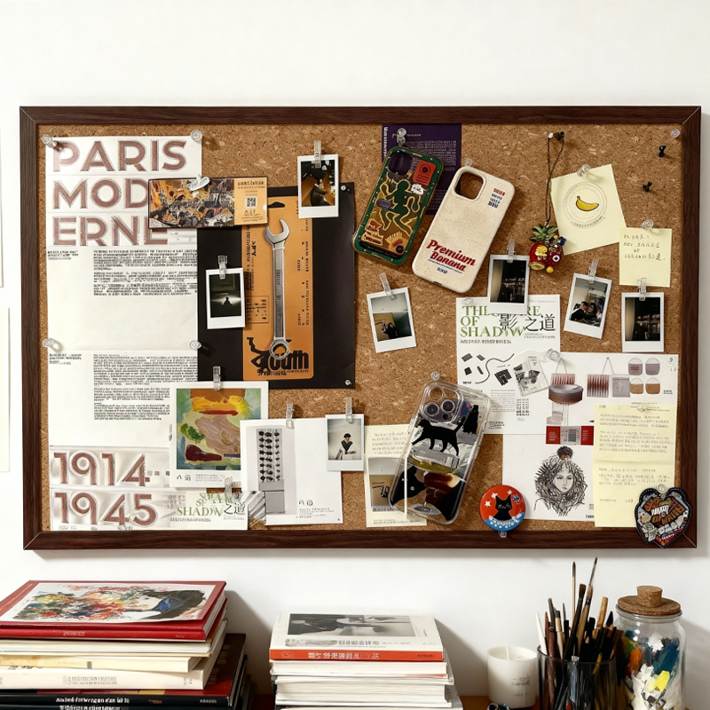 Brandland复古木纹框软木板照片展示墙同款家居氛围墙面装饰客厅走廊背景墙玄关挂画图钉针插留言板机构收纳