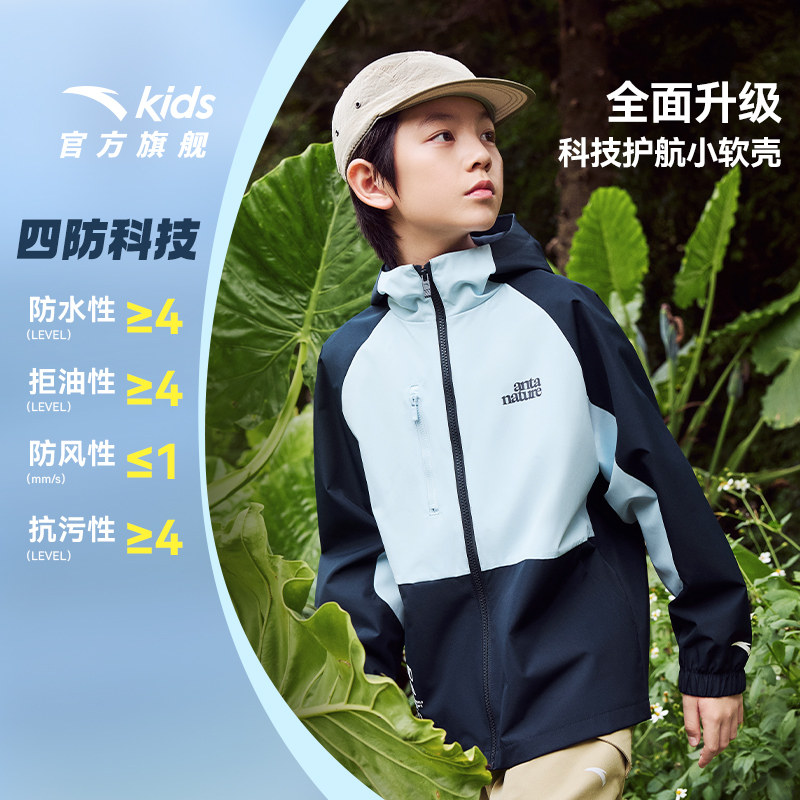 安踏儿童外套|25秋装新款男童户外软壳衣外套女童防水防风上衣潮