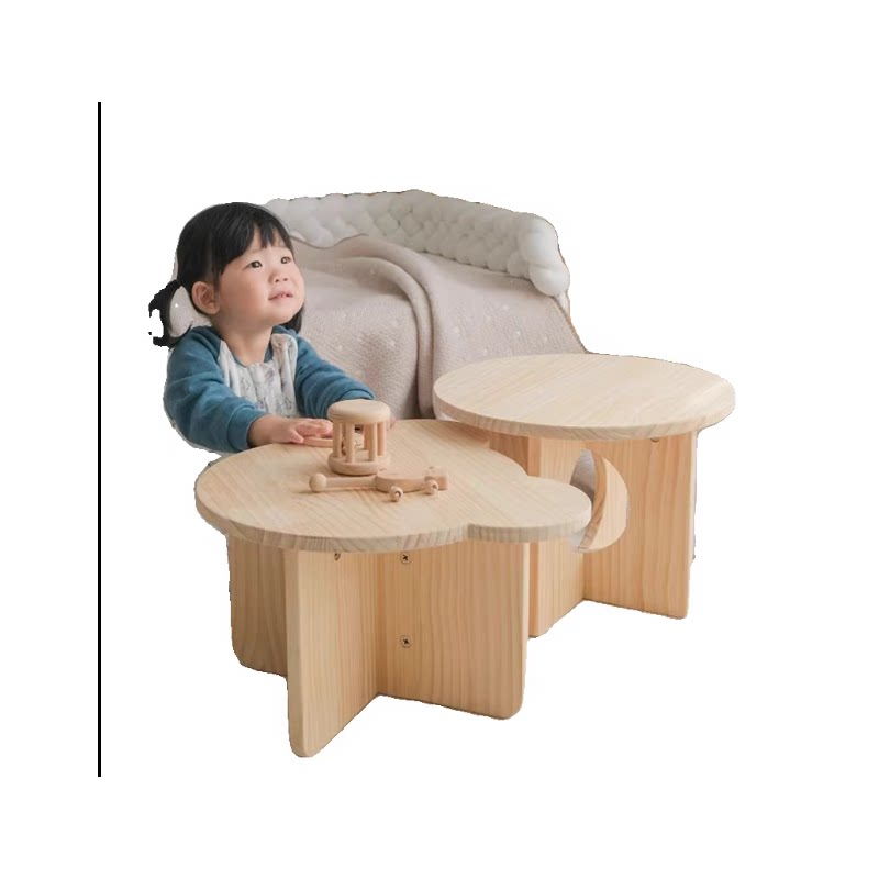 d巴然实木桌儿童小桌子幼儿园手工桌小圆桌学习桌韩系小茶几摆件
