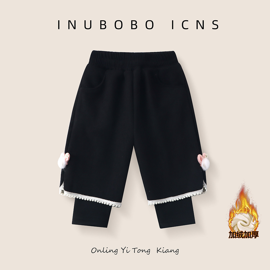 女童加绒裤子秋冬季2025新款儿童冬装直筒裤女宝宝加厚休闲阔腿裤