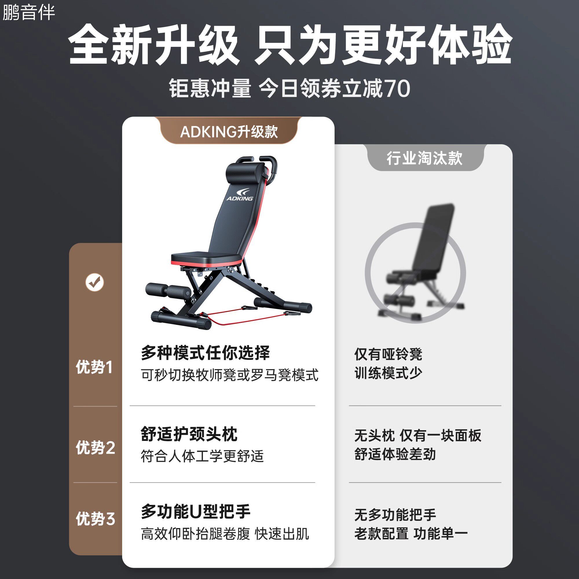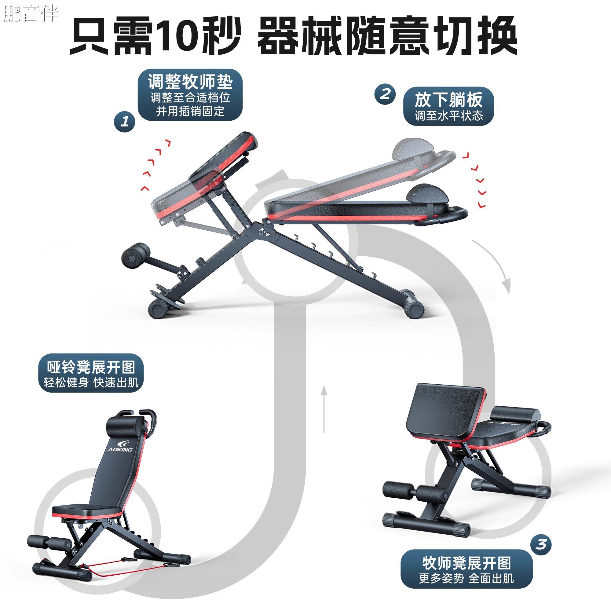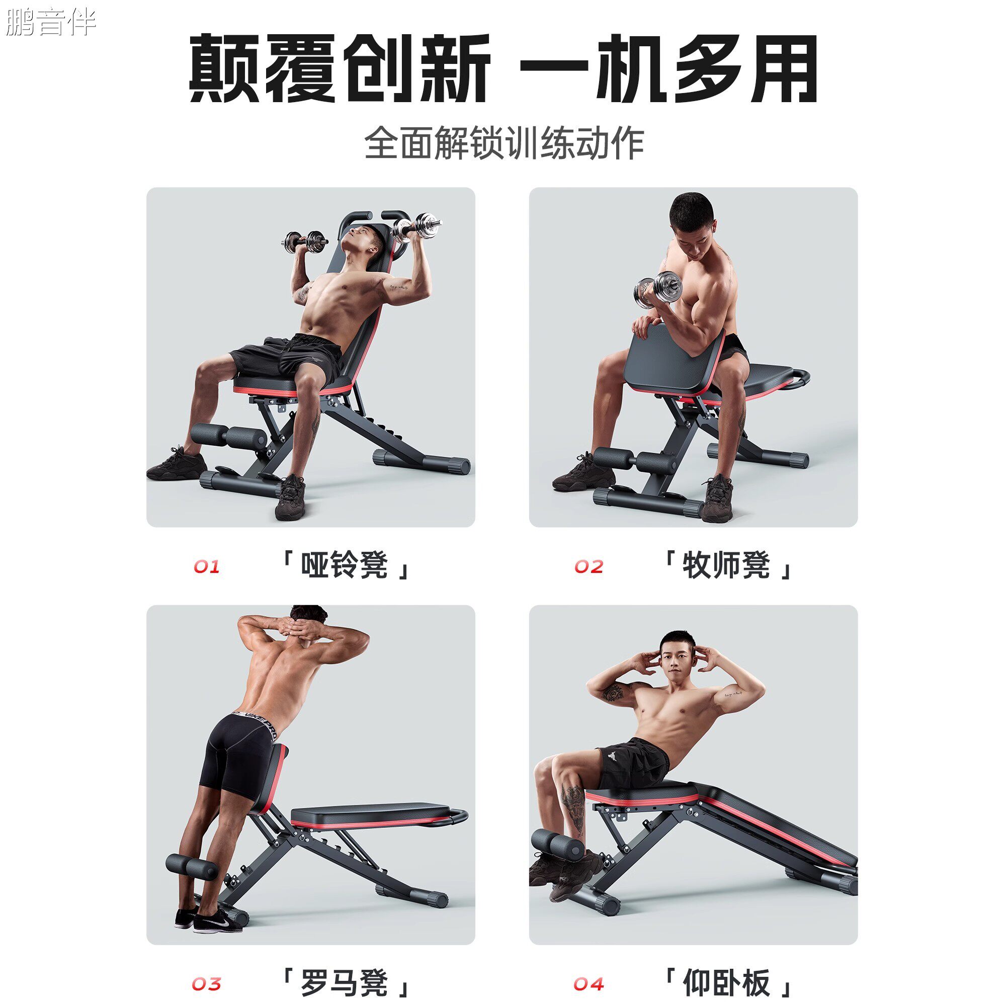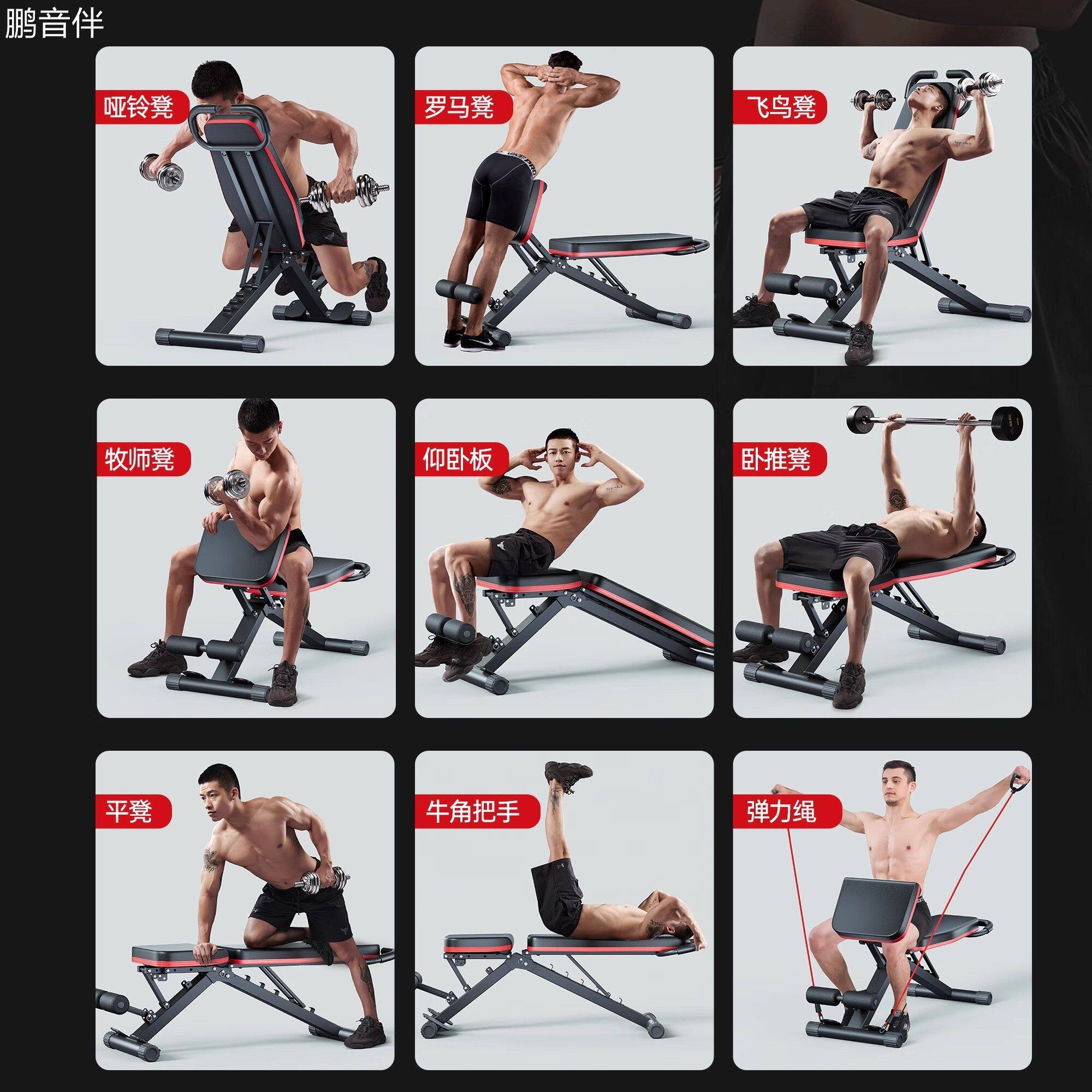 鹏音伴哑铃凳卧推男士仰卧起坐辅助器家用健身椅多功能室内专业健身器材摆件饰品