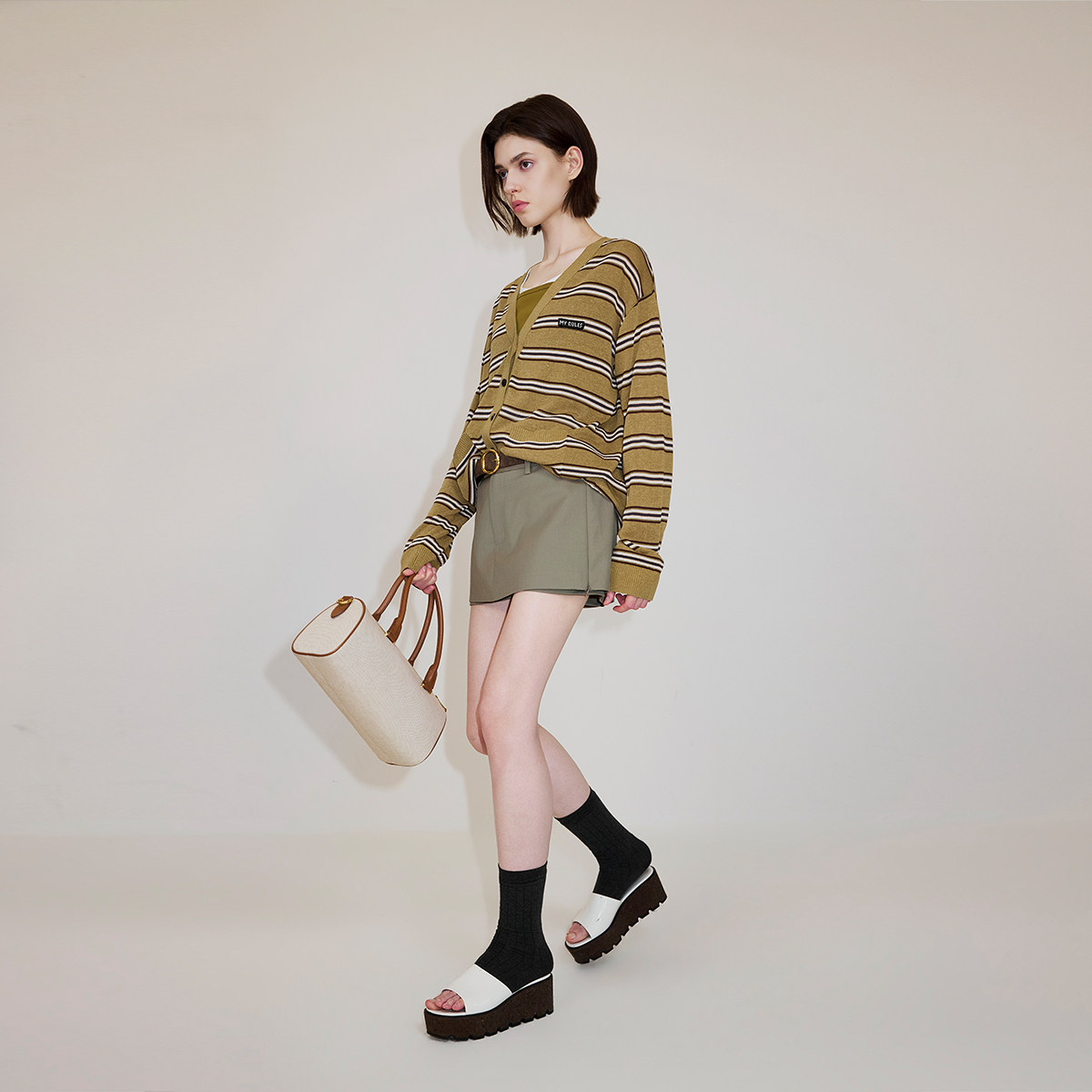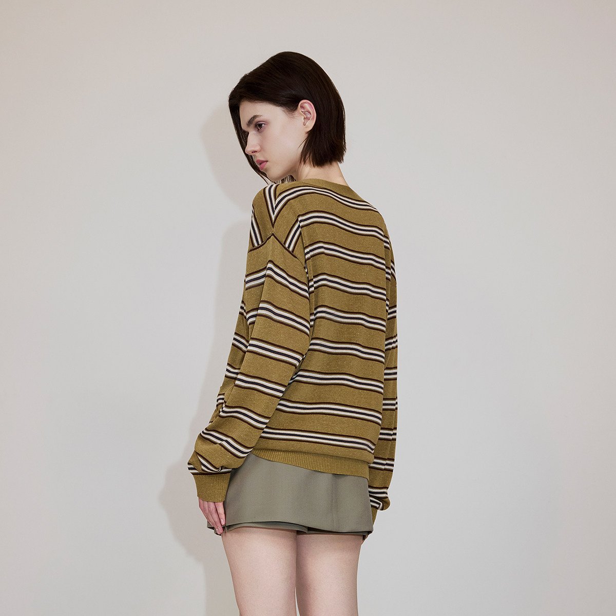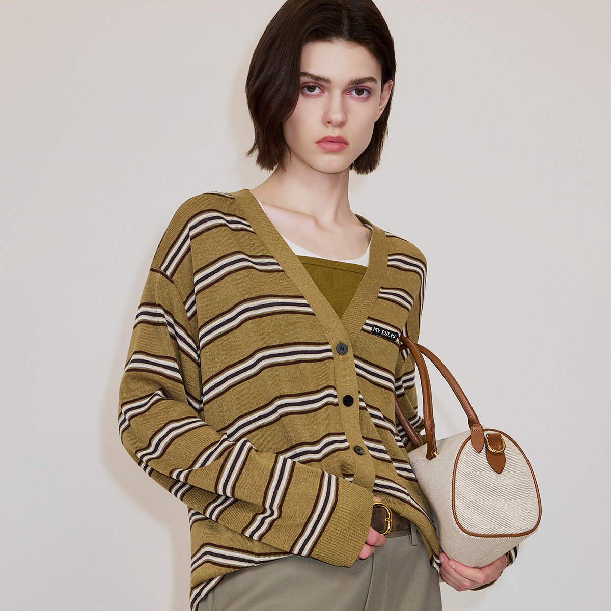 【新品】OCHIRLY欧时力 针织外套2026春莱赛尔亚麻条纹V领开衫