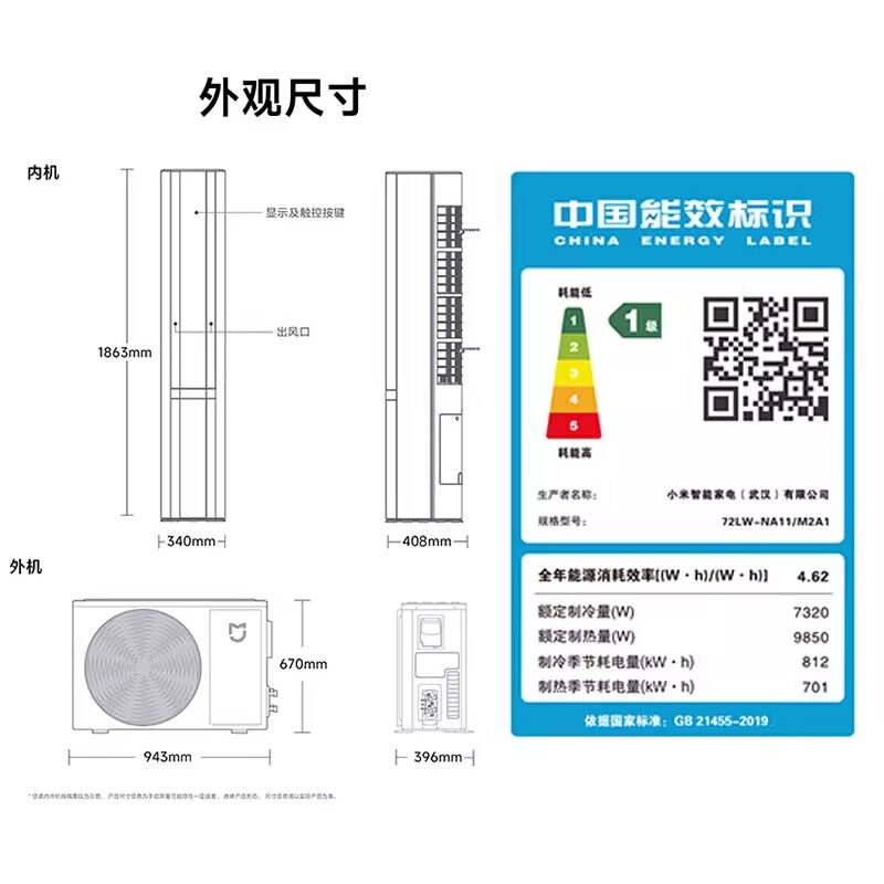 小米巨省电空调挂机冷暖两用1.5匹1匹一级能效变频家用智能壁挂式