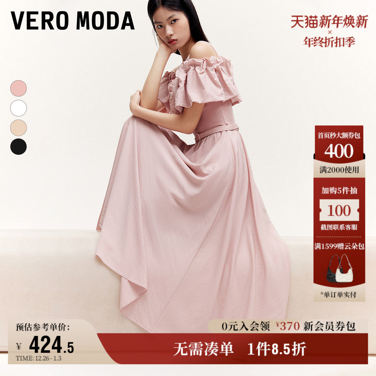 Vero Moda奥莱连衣裙秋冬新款圆领A型大裙摆长裙抹胸可拆裙子短袖