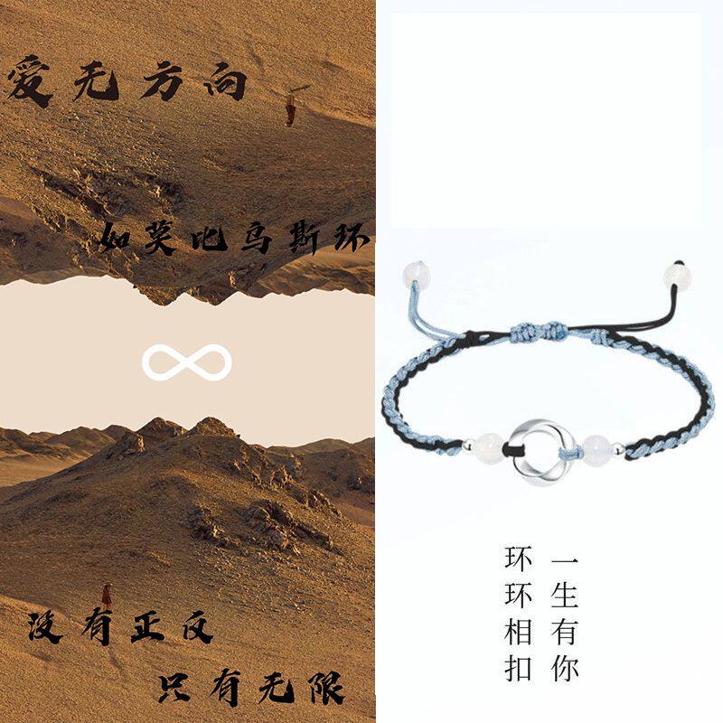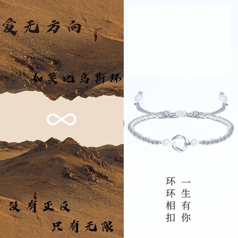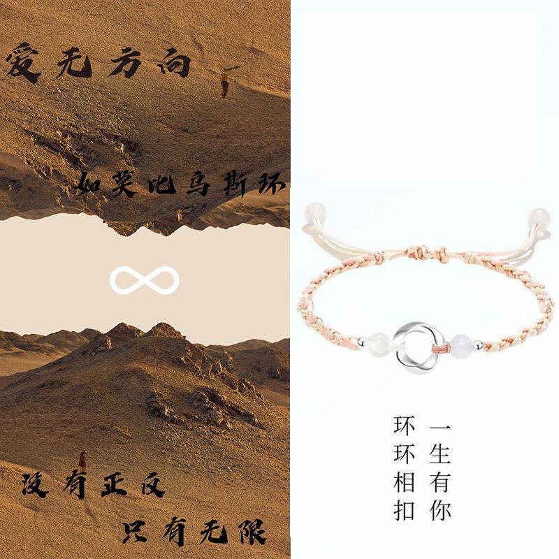足银莫比乌斯环手链纯银999男女生手绳情侣闺蜜银饰品礼物编织