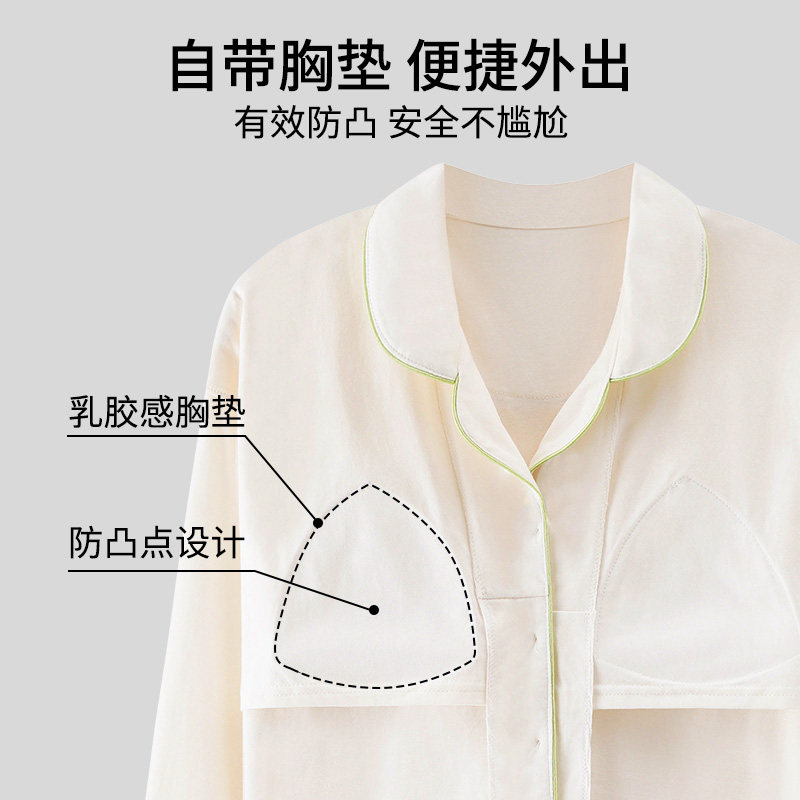 纯棉睡衣女士带胸垫一体女款春秋长袖2026新款大码秋冬家居服套装