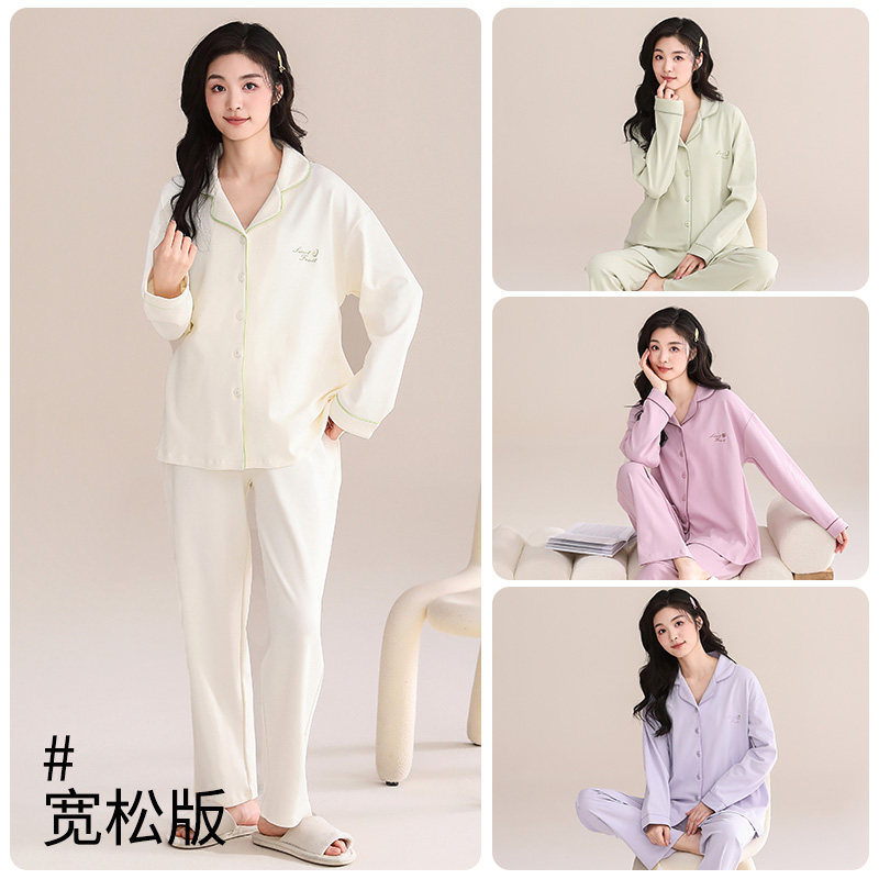 浪莎睡衣女春秋款纯棉长袖2025年新款秋冬大码薄款宽松开衫家居服