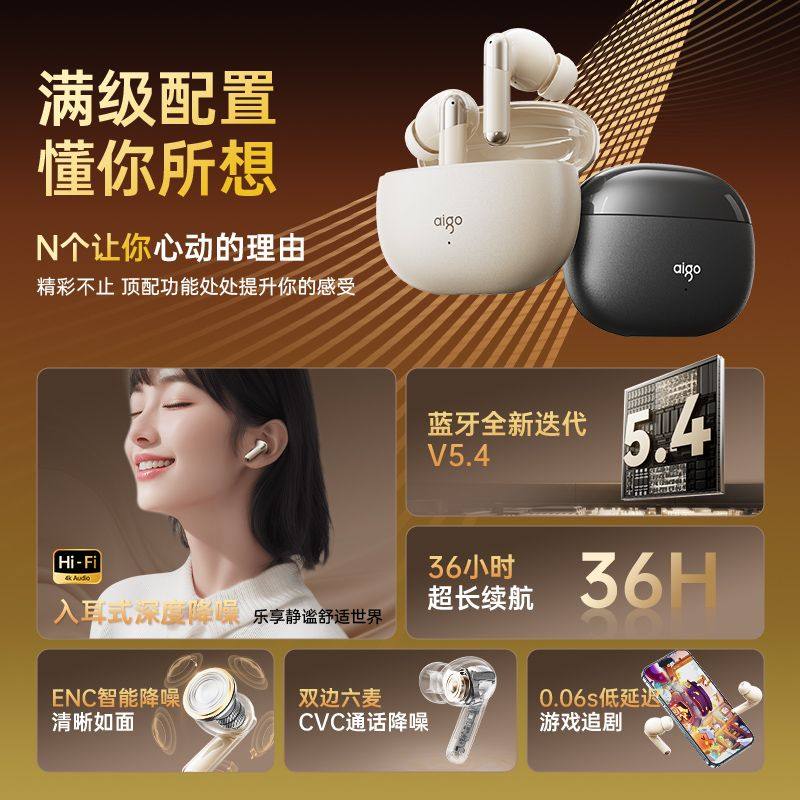 爱国者无线蓝牙耳机半入耳式2025新款高音质降噪运动跑步超长续航