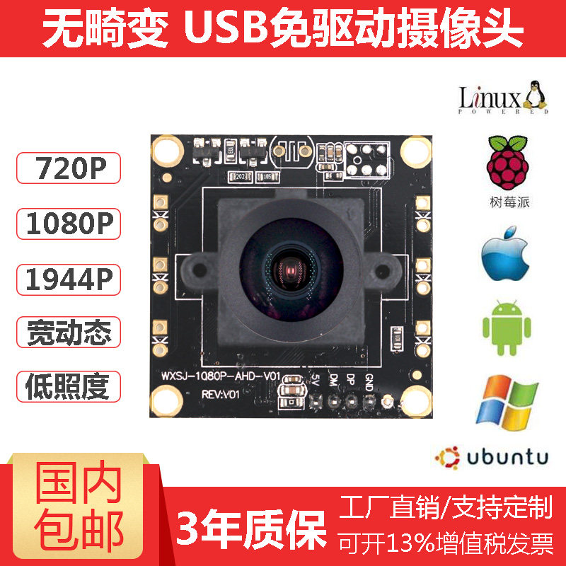 usb摄像头模块高清广角无畸变树莓派安卓PC电脑uvc免驱外接1080P