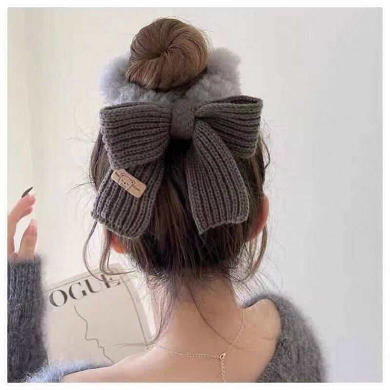 秋冬蝴蝶结大肠发圈女发饰针织毛线头绳丸子头绑发毛绒小发绳头饰