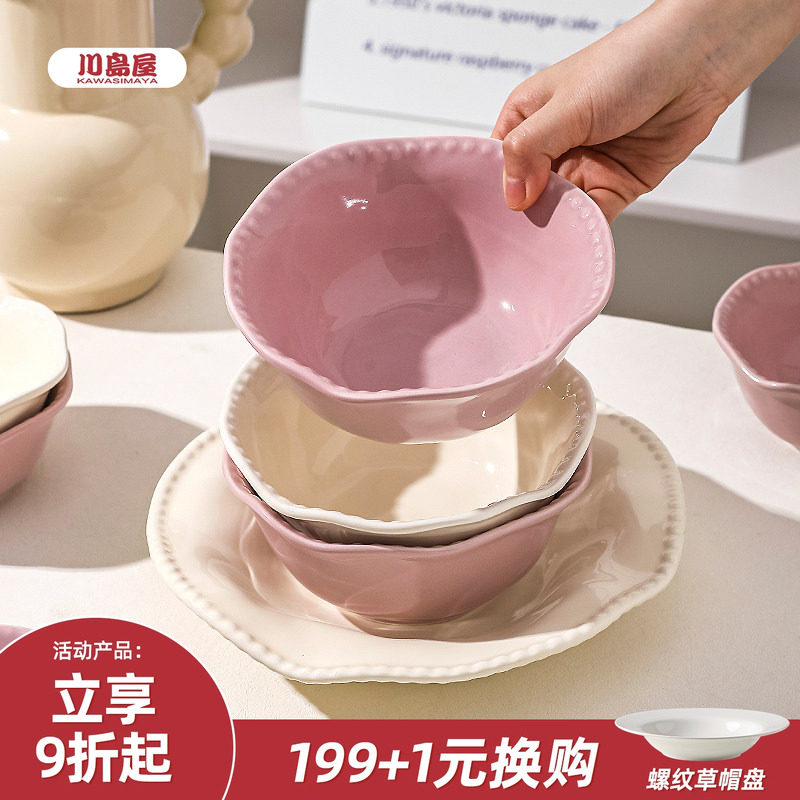 川岛屋奶油风碗碟餐具家用特别好看的陶瓷饭碗面碗汤碗盘子酸奶碗