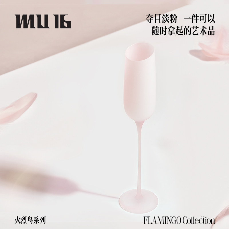 MU16火烈鸟磨砂款香槟杯无铅水晶高脚杯子礼盒装新婚礼物