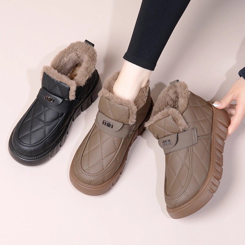 15HZ的鲸厚底雪地靴女2025新款防滑棉鞋女一脚蹬冬季雪地棉女鞋子
