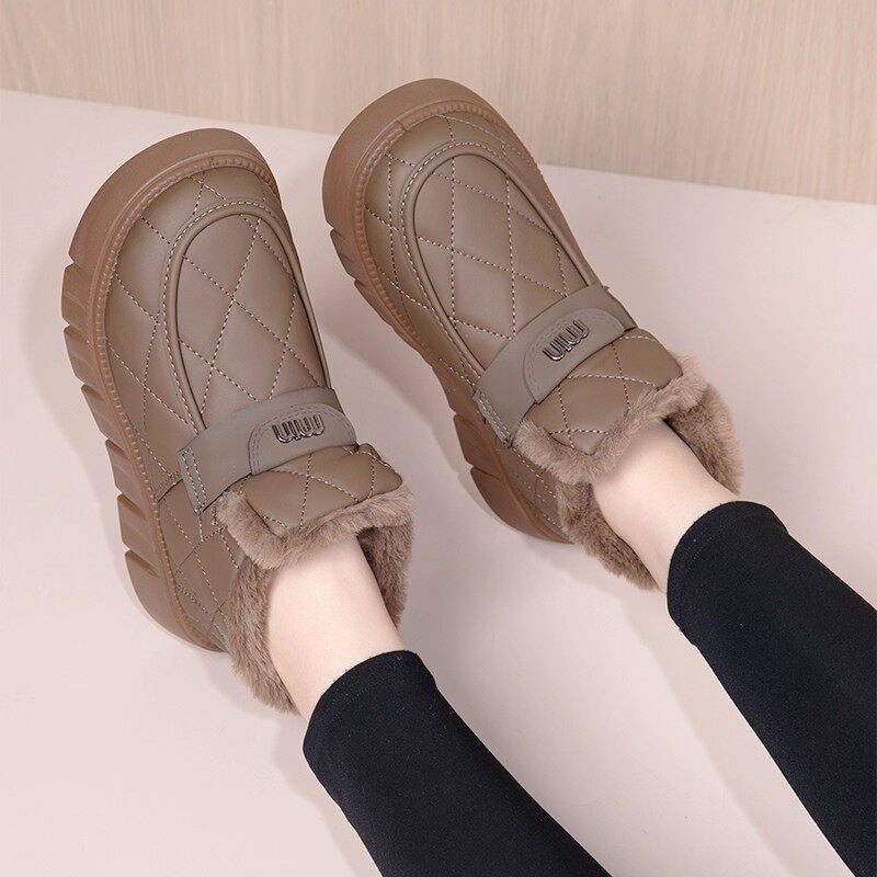 低帮厚底雪地靴女2025新款冬季懒人一脚蹬毛毛棉鞋加绒加厚女鞋子