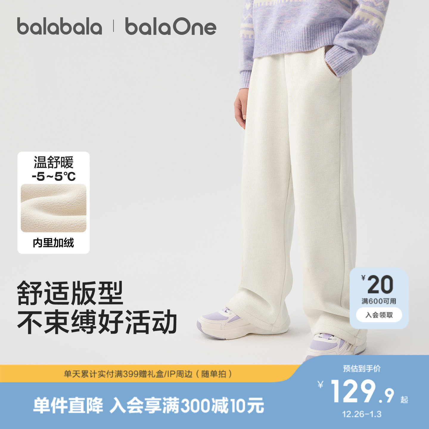 【balaOne】巴拉巴拉童装女童加绒直筒儿童裤子2025冬装新款保暖