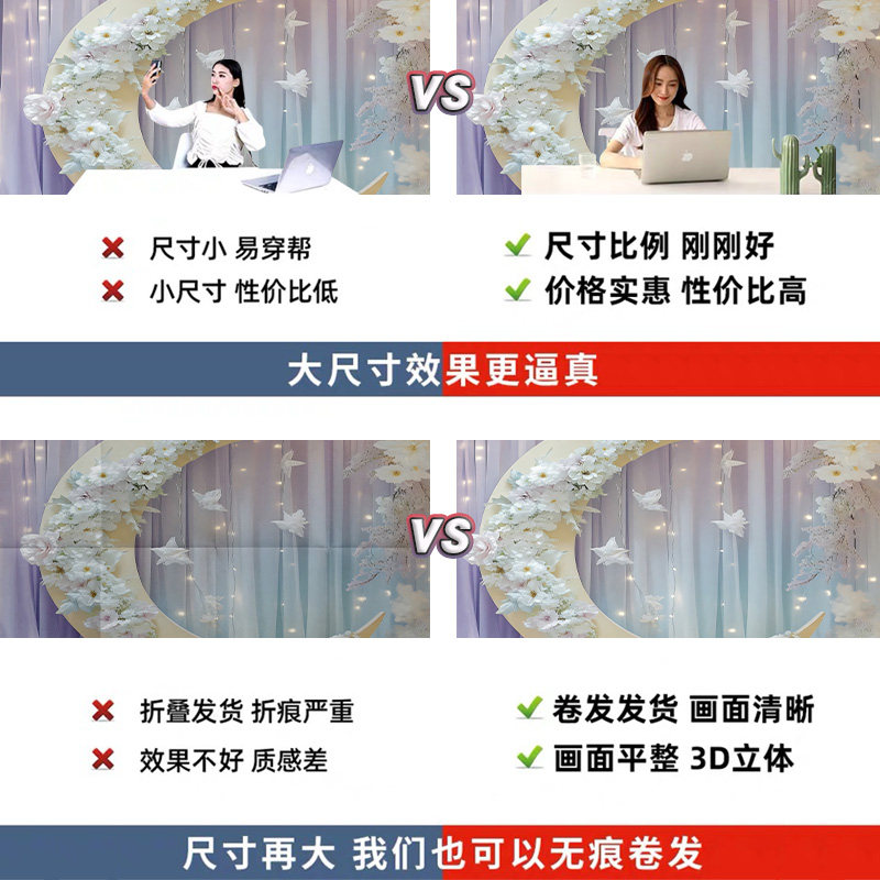 月亮卧室场景布置高级感网红暖色氛围感直播背景布高级感直播背景布3d立体壁纸直播间拍照区布置男女主播室内