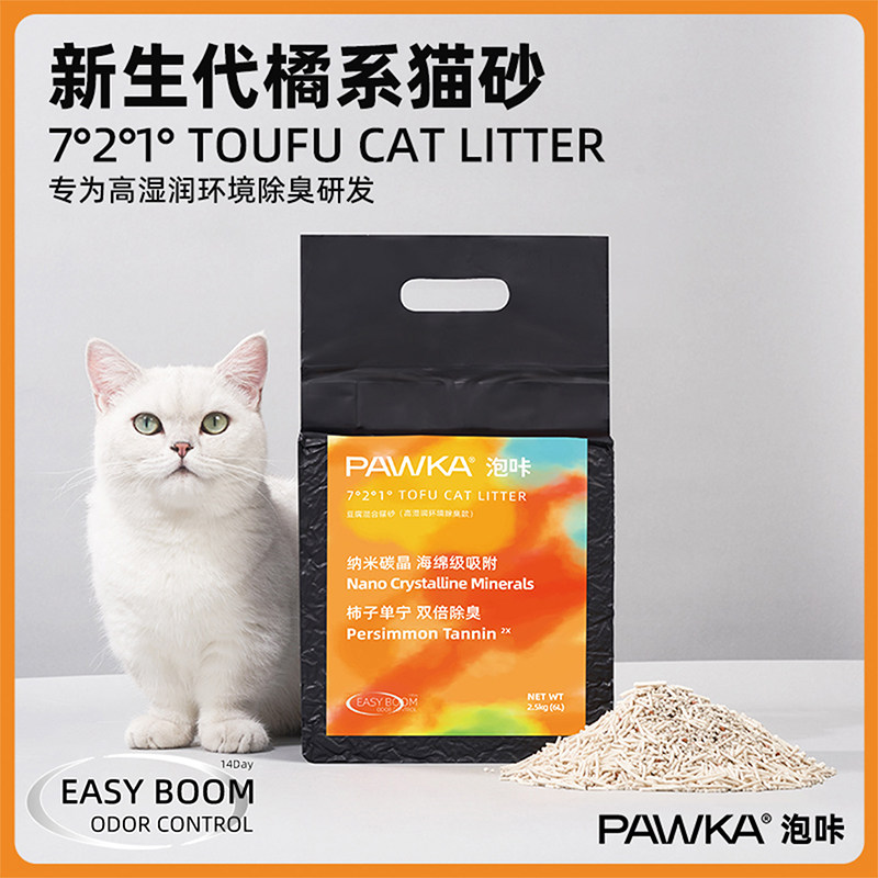 PAWKA泡咔柿子猫砂海绵级吸附膨润除臭吸水混合豆腐猫砂2.5kg/包