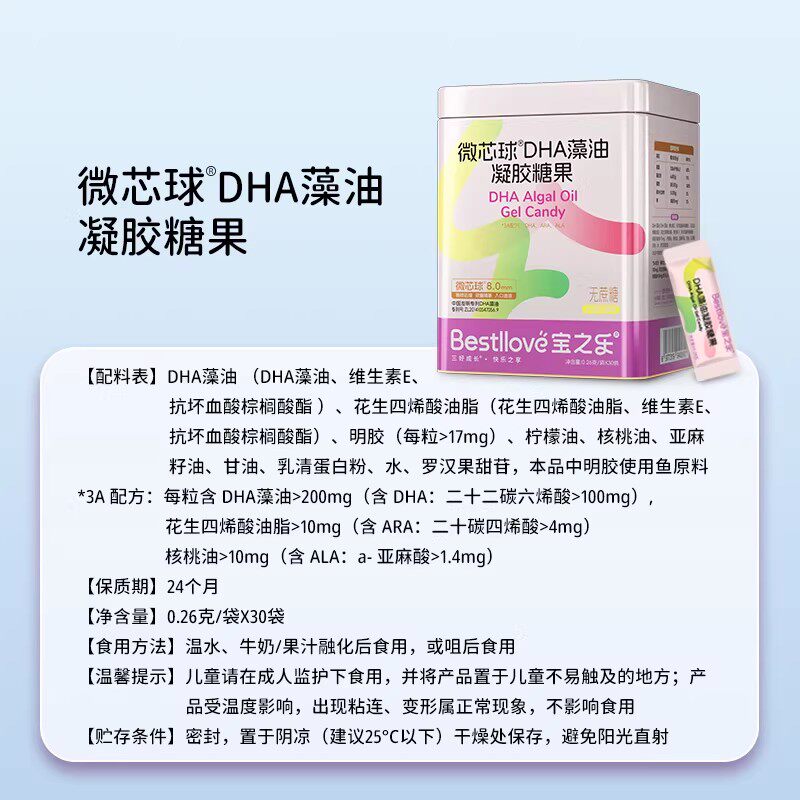 贝欧宝0糖DHA藻油软糖0腥味法国进口DHA高含量100mg儿童营养软糖