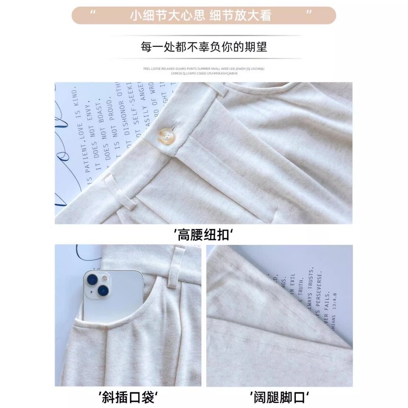 汐家女裤 春季新款松弛感弯刀裤女大码皮马棉宽松阔腿休闲裤