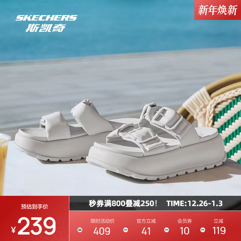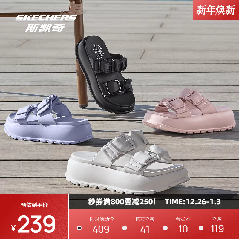 斯凯奇女子运动时尚拖鞋凉鞋户外穿增高柔软舒适轻盈厚底凉拖鞋