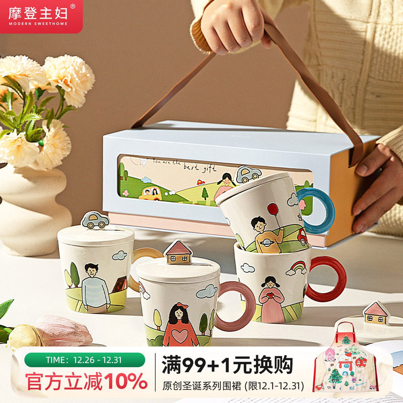 摩登主妇陶瓷马克杯乔迁新居礼物送闺蜜结婚一对情侣水杯带盖杯子