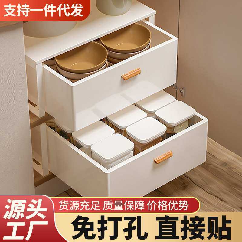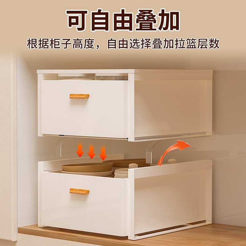 橱柜拉篮柜内调料分层收纳架深柜拉蓝水池下水槽置物架碗篮推拉式
