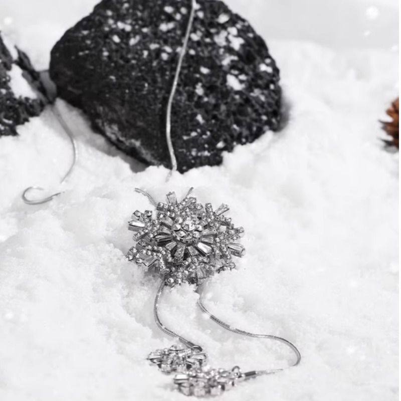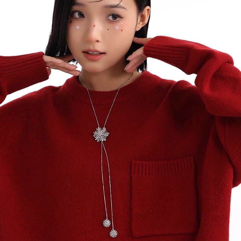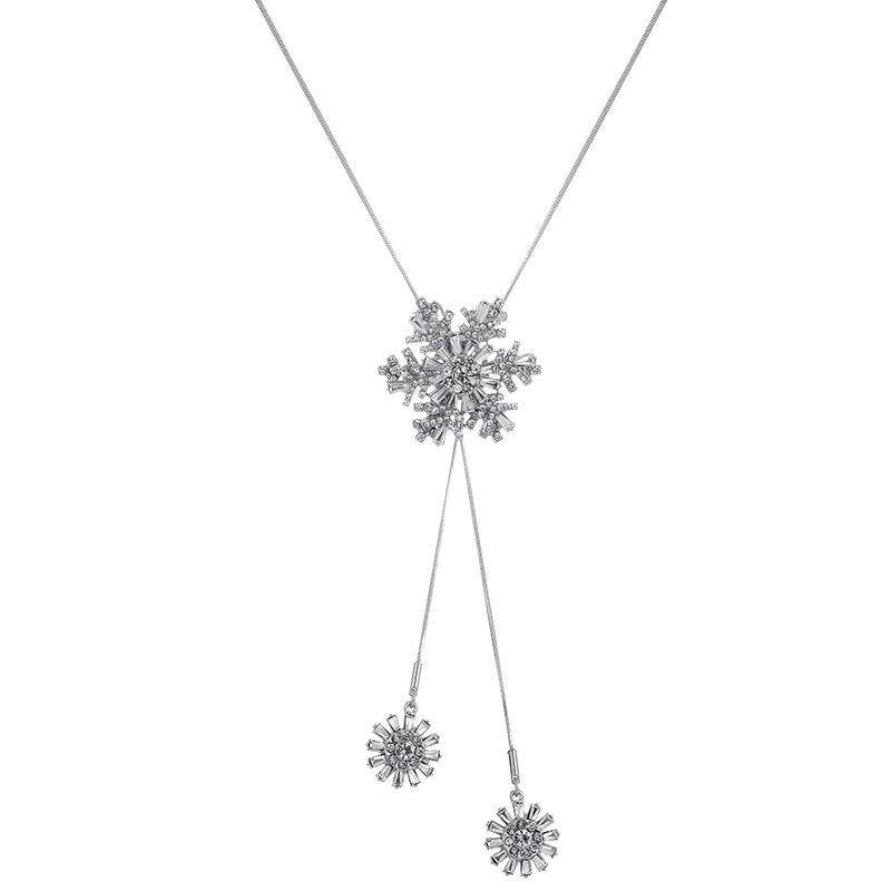 雪花吊坠长款项链女可旋转锆石钛钢毛衣链秋冬情侣配饰新款可调节