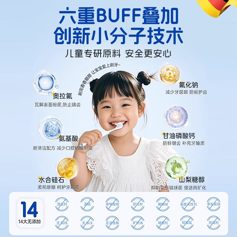 松达儿童防蛀牙膏3-6-12岁以上宝宝牙膏防蛀牙适用换牙期