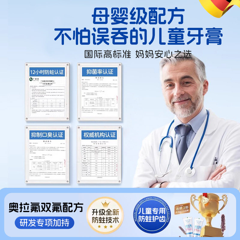 戴可思儿童牙膏3到6岁到12岁含氟换牙期1到3岁无氟宝宝牙膏